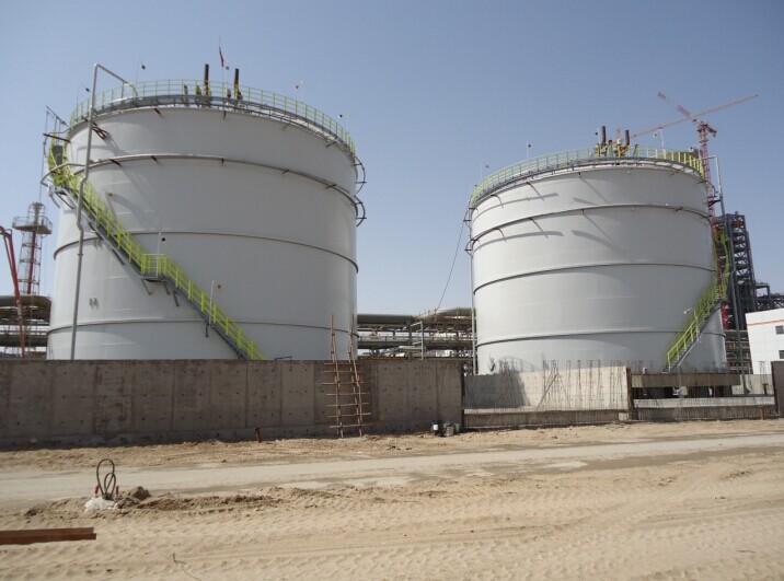 做好底漆和中间漆的两台氨罐