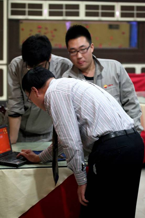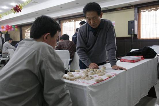 公司员工在进行象棋比赛