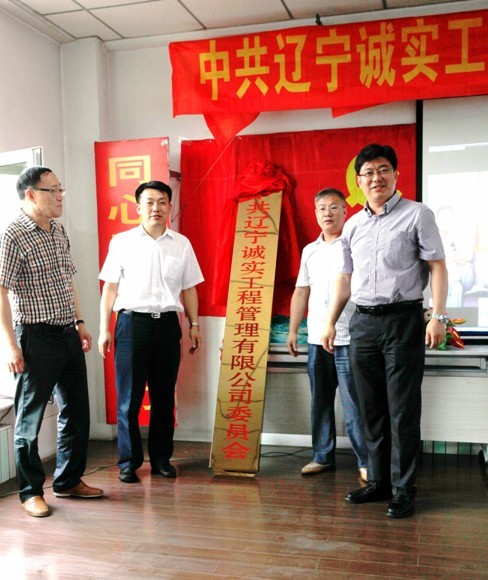 中共抚顺市委组织部领导李劲夫(右二)、中共新抚区委副书记罗玉生(左二)、新抚区委常委组织部长  隋淑贵(右一)、乐鱼手机官方网站入口,乐鱼(中国)董事长赵华(左一)为中共乐鱼手机官方网站入口,乐鱼(中国)委员会揭牌