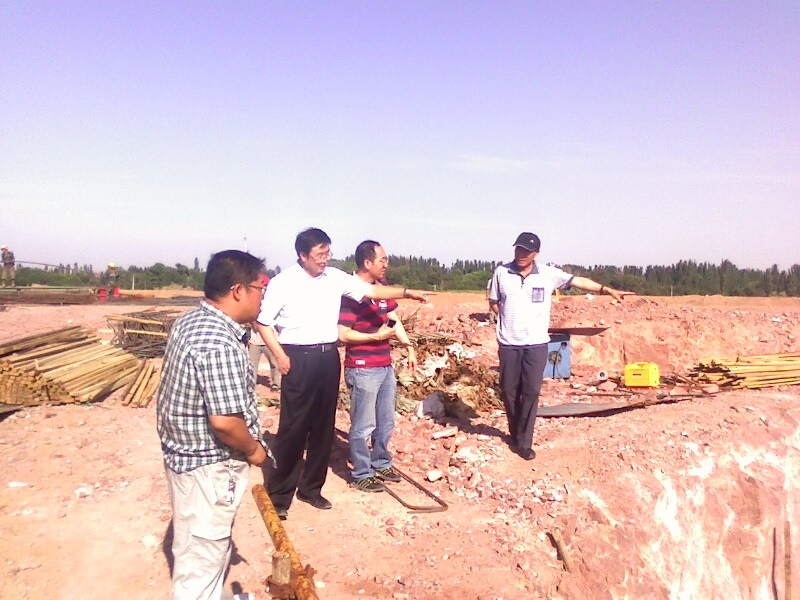七月八日公司领导来腾格里项目视察,总经理孙学良(左二)等公司领导在水源地泵站询问进展工程情况