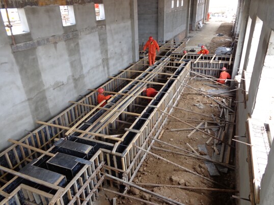 变频室室内电缆沟混凝土浇筑筏板支设